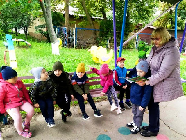 Осінні зустрічі під відкритим небом на майданчику у дитячому садочку "Веселка" з вихованцями старших груп "Суничка" та "Золотий ключик" продовжуються. 14 вересня на гостину до малечі завітали працівники бібліотеки-філії №12. Діти залюбки поринули в захоплюючий світ доброї і мудрої казки. Казка - чарівна країна. Вона дає нам перше уявлення про добро і зло, правду і неправду, чесність і справедливість. З перших днів дитинства нас супроводжують казкові герої. Саме таких улюблених героїв пригадали маленькі читайлики. Діти приймали участь у літературній вікторині " Казкограй", відгадували загадки, давали відповіді на питання вікторини, шукали загублені речі героїв з казкової скриньки. Літературний поєдинок виявився змістовним і цікавим, кожен учасник проявив себе, як гарний знавець казок. Малеча залюбки гортала сторінки кольорових ілюстрованих книжечок, що були представлені для перегляду.